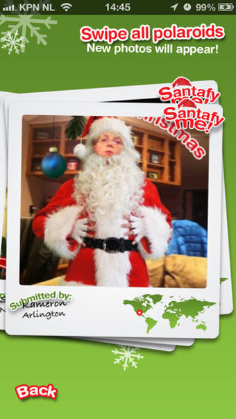 Eventueel voeg je nog een aantal grappige – of niet zo grappige - kerstattributen toe aan de foto. Uiteraard is het ook mogelijk om een bestaande foto uit de Galerij van je smartphone of tablet te gebruiken. De mutsen, pakken en attributen zijn draaibaar, uitrekbaar, te verkleinen en meer. Vooral het toevoegen van rare kerstdecoraties zorgt voor af en toe hilarische composities. Je deelt deze composities, nadat je foto hebt opgeslagen, naar hartenlust via e-mail of social media.